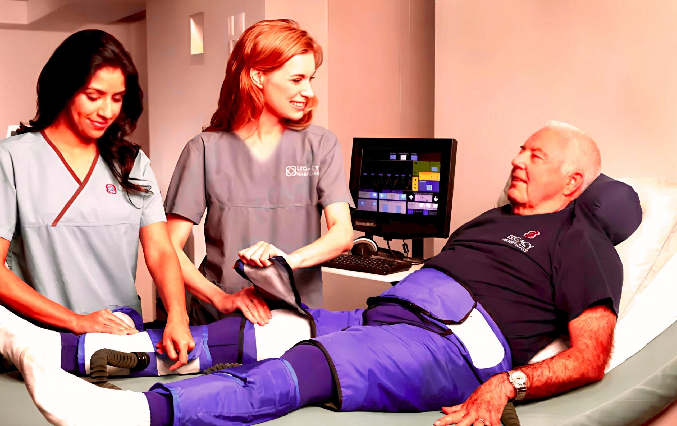 The therapy involves wearing inflatable cuffs around the legs, which rhythmically compress and release in sync with the heartbeat. This action increases blood flow back to the heart, encouraging the development of new blood vessels (collateral circulation) and improving oxygen supply to heart muscles.